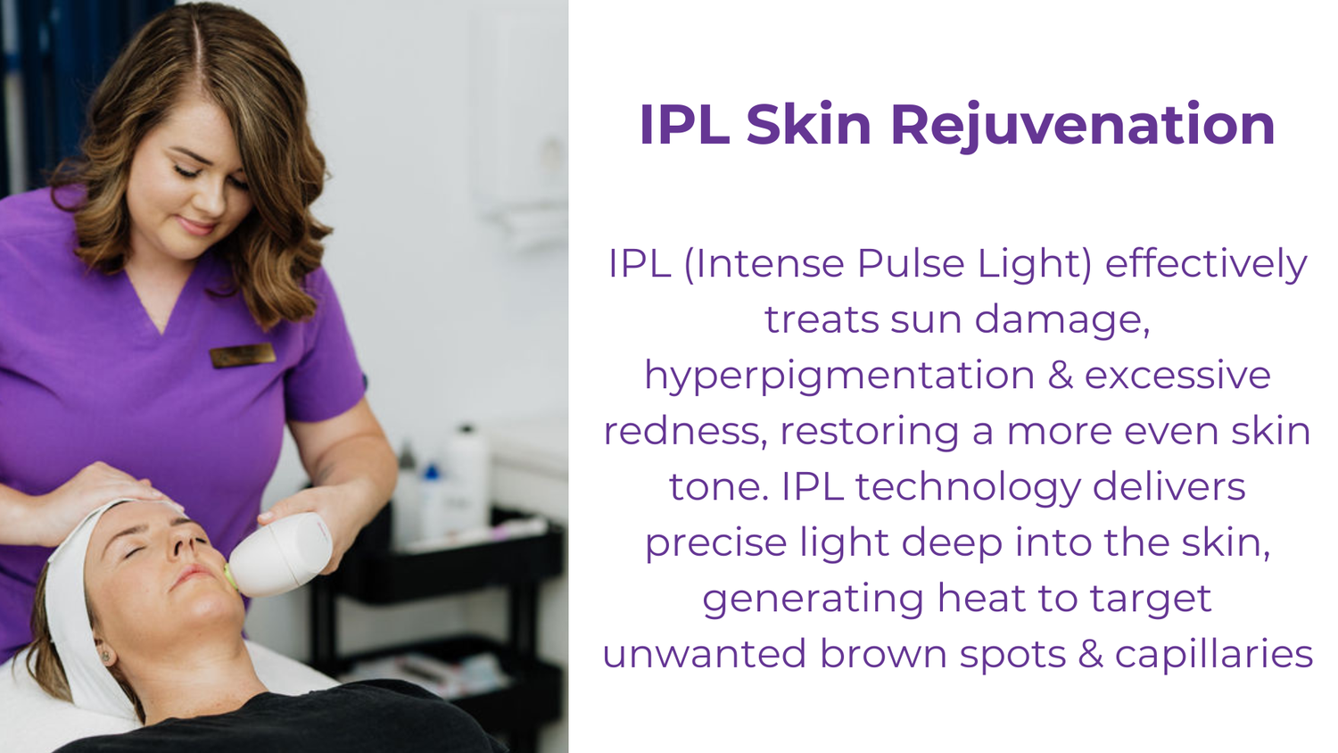 Pairing it with IPL supercharges your results by targeting pigmentation, redness, broken capillaries and uneven tone, leaving the skin clearer, brighter and more even.